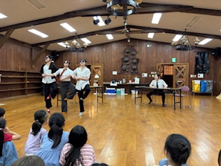 2日目は諸角先生によるマイムのレッスン!真剣にお話を聞いて取り組む姿も印象的でした。